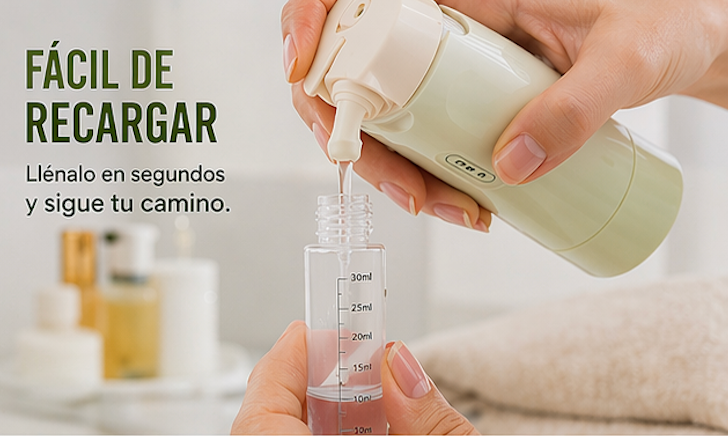 Respuesta 2: Sirve para llevar varios líquidos de uso personal (como shampoo, gel o crema) en un solo recipiente, facilitando el transporte durante viajes.